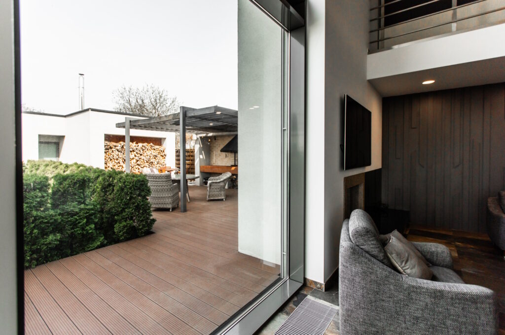 Також з вітальні можна вийти на літню терасу і зону відпочинку – до барбекю і басейну