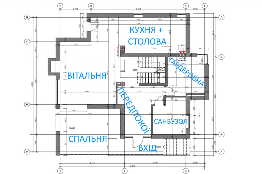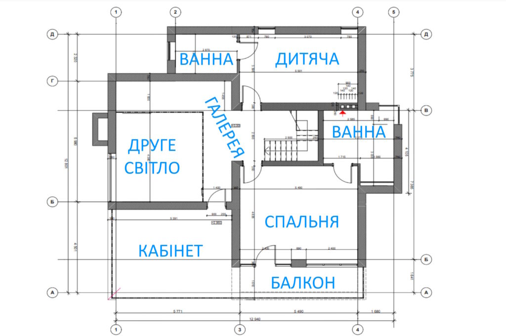 Зі сходів ви потрапляєте до гарелереї в простір другого світла вітальні.